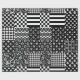 Black and White Minimalist Mixed Patterns of Stripes, Polka Dots, Hearts, Check, Anchor, Blob, Harlequin rhombus, Zigzag Chevron, crowns, fleur-de-lis, floral illustration, Houndstooth Tree illustration, Paisley and Irregular Abstract Designs