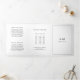 Simple trifold brochure featuring a modern and minimalist design. The front panel has your two initial monogram logo and your business name surrounded by a border. The back panel has your hours of operation and contact information. The inner fold panel has two headers and text boxes. The inside has multiple templates for information about your business on the outer panels and a price list in the middle panel. All text is black over a white background and the fonts and background colours may be changed to any colours you wish. This trifold brochure is great for a hair stylist, beauty salon or spa, but the classic style can be used for any business.