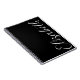 Lovely, modern black background accents a white script font, lending minimal elegance to school or work essentials. Make it truly unique by adding a name, subject or title.