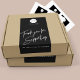Modern, minimalist black and white design for your personalised Thank You business packaging stickers. Stickers are intended to go vertically over the lid of the packaging box. Select the ''Customise it'' button if you like to change text size, text colour.