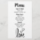 Add some fun to your wedding or bridal shower with this cute black and white love with hearts menu card. Fun menu for your minimalist or modern wedding, anniversary party, engagement party, bridal shower, rehearsal dinner.