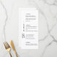 "Elegant and modern minimalist wedding menu featuring a clean black and white design with a stylish vertical script title. Perfect for weddings, formal dinners, anniversaries, or special celebrations. Personalise with your own menu items to create a timeless piece of event stationery that complements any theme or colour palette."