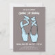 This classically simple, yet elegant design features pointed toe ballet slippers in soft baby blue with a complimenting taupe background. A pretty invitation for your favourite ballerina. All text can be personalised to your liking.