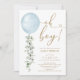 Minimalist Blue Balloon Eucalyptus Boy Baby Shower Invitation