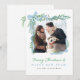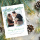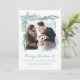 Minimalist Blue Bow & Greenery Holiday Photo Card