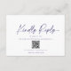This elegant RSVP card features a clean and minimalist design with a stylish calligraphy header, "Kindly Reply." A convenient QR code allows guests to RSVP and select their meal preference effortlessly. The refined navy blue typography on a crisp white background ensures a timeless and sophisticated look. Pair it with matching wedding stationery for a cohesive suite.