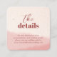 "Add a touch of love and romance to your wedding invitations with these elegant Minimalist Blush & Bloom Bold Script Wedding Website QR Code RSVP Wedding Enclosure Cards. Featuring a delicate blush and rose gold watercolor wash with subtle texture, these cards are the perfect accompaniment to your invitations. On the front, "The Details" is displayed in bold script followed by the URL of your wedding website. These cards seamlessly guide your guests to all the essential wedding information. On the back, a convenient QR code provides quick access to all the wedding details, including RSVP information. Customise all the text easily over this template, making it effortless for your guests to RSVP and share their attendance. These versatile cards are perfect for any wedding style and add a touch of modern convenience to your special day.