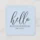 This business card features a simple minimalist script type hello in a grey black typography on a light blue background. Add your contact information, social media info, and QR code. A simple business card that serves as a friendly introduction. The rounded corners add a touch of elegance.