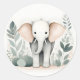 Minimalist Boho Elephant Forest Green Leaves Classic Round Sticker