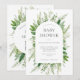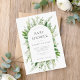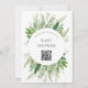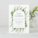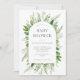 Modern minimalist baby shower invitation featuring simple design, elegant style calligraphy and boho greenery watercolor botanical design.