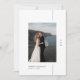 Set the stage for your dream wedding with this Minimalist Boho Photo Wedding Invitation. Perfect for a romantic destination or oceanfront ceremony, this double-sided invitation features your favourite couple photo, framed by a minimalist design that exudes timeless elegance. Ideal for non-traditional yet formal events, this invitation combines the sophistication of a black-tie affair with the laid-back charm of a coastal celebration. The simple black and white colour scheme adds a touch of luxury, making it a perfect choice for those seeking a stylish yet understated wedding invite. Whether you’re planning a fairytale outdoor wedding or a chic beach reception, this invitation captures the essence of your love story in a contemporary and classy design.