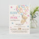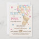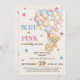Minimalist Boho Pink Blue Bear Gender Reveal Invitation