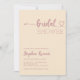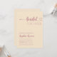 This invitation captures the essence of modern boho chic with its captivating rose gold colour palette. Every word is meticulously adorned in the luxurious hue of rose gold, adding an air of elegance and romance to the occasion. The majority of the text is presented in a clean and sleek block font, embodying modern minimalism at its finest. However, the bride's name is delicately scripted, adding a touch of softness and grace. The word "bridal" is playfully stylised in a whimsical script font, featuring bohemian flourishes that culminate in a charming heart at the end—a nod to the free-spirited nature of boho aesthetics.