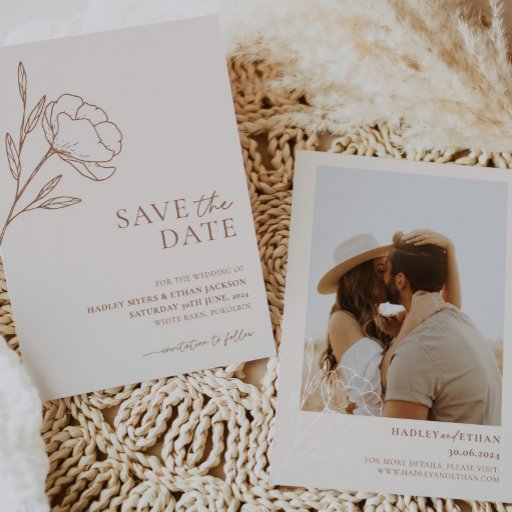 A modern minimalist wedding flat thank you card with terracotta boho botanical flower design. Matching items available including wedding invitation, wedding save the date and more.