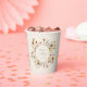 Wedding favour paper cups featuring personalised names and date with wildflower floral background design.