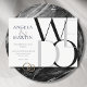 The simple but bold 7" x 5" wedding invitations feature the words, "We Do," in oversized black and grey letters on a neutral background with black and light grey editable place holder text for the wedding couple's first names, date, time, venue, venue address with the message at the bottom, "reception to follow."