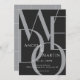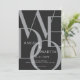 The simple but bold 5" x 7" wedding invitations feature the words, "We Do," in oversized grey letters on a black background with white editable place holder text for the wedding couple's first names, date, time, venue, venue address with the message at the bottom, "reception to follow."