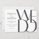 The simple but bold 7" x 5" wedding invitations feature the words, "We Do," in oversized black letters on a neutral background with black and light grey editable place holder text for the wedding couple's first names, date, time, venue, venue address with the message at the bottom, "reception to follow."