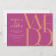 The simple but bold 7" x 5" wedding invitations feature the words, "We Do," in oversized cantaloupe orange letters on a magenta background with an orange ampersand and cream editable place holder text for the wedding couple's first names, date, time, venue, venue address with the message at the bottom, "reception to follow."