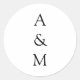 Minimalist Bold Monogram Trendy Chic Typography Wedding Classic Round Stickers in Black and White