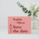 Minimalist bold pink typography save the date postcard