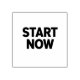 Bold motivational quote art strong geometric font with words "start now" on clean white background.