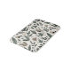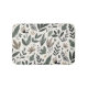 A smooth off-white bath mat with a minimalist botanical pattern of green, olive, and brown leaves and small buds. A soothing accent that brings calm natural elegance to your bathroom.