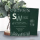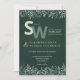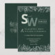 This nature-inspired botanical wedding invitation beautifully blends minimalist elegance with lush greenery. Set against a deep forest green background, it features delicate white leafy illustrations adorning the top and bottom borders, creating a refined and organic aesthetic. The large monogram initials stand out in modern typography, while subtle accents like the wedding date banner and fine foliage give the card a timeless charm. Perfect for simple weddings, garden ceremonies, and eco-friendly celebrations, this minimalist wedding stationery captures the harmony of nature and modern sophistication.