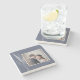 Beautiful and stylish, this custom stone coaster features your photo and text on a minimalist botanical illustration in navy blue. Great for anniversary parties.