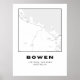 Celebrate Bowen with this minimalist black-and-white map design, showcasing the city’s coordinates (-20.0143° S, 148.2478° E). A stylish artwork perfect for Bowen lovers and anyone looking to add modern elegance to their decor.