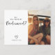 Minimalist and chic, this Bridesmaid proposal card is fully customisable. Featuring editable text "(name), will you be my Bridesmaid?" in a classic black and white style, and space for the month and year of your big day (or use this space to write a personal message). Make it really personal with a photograph.