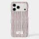 A stylish and modern custom phone case cover for Apple iPhone and Samsung Galaxy models. Sweet hand painted watercolor vertical stripes in brown with a cut-out square space for your name. Easily personalize this yourself right on the platform. Choose your favorite color and your phone case model, and you have a beautiful customized accessory in minutes! This case is brown and there are several other colors available in this same trendy design. Your name is featured in a delicate and hand written classic serif typography inside a white cut-out with a cute bow!