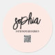 Minimalist Brush Script Blush Pink QR Code Classic Round Sticker