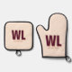 Minimalist Burgundy Pink Personalised Monogram Oven Mitt & Pot Holder Set