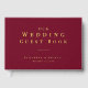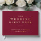 Capture your guests' heartfelt messages with this minimalist wedding foil guest book featuring “Our Wedding Guest Book” and your names and wedding date in classic serif typography rendered in shimmering foil. Printed on an elegant burgundy red background and enhanced with your choice of real gold, silver, or rose gold foil, this guest book complements a wide range of wedding aesthetics—from traditional and formal to modern and casual. Perfect for your ceremony or reception, it invites guests to share their well wishes while doubling as a keepsake you’ll treasure for years to come.