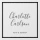 A minimalist window cling featuring your name or business name in elegant modern script calligraphy. The layout is framed with thin black lines for a classic and sophisticated look. This unique, stylish design is perfect for leaving a lasting impression on your clients. It's an ideal choice for any professional in beauty-related businesses, such as a hair stylist, makeup artist, nail and lash specialist, as well as salons, spas, wellness centres, boutiques, business professionals, and more.
