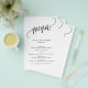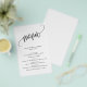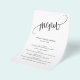 This minimalist design features a calligraphy heading and your custom text. Add your text using the template form. Choose "customise further" at the bottom of the template form to change the font/layout and to add text to the back of the menu.