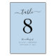 Minimalist Calligraphy Script Dusty Blue Wedding Table Number