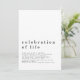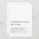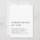 Minimalist Celebration of Life Luncheon Invitation. A simple design with lots of white space for a contemporary modern touch. The header is large in stylish lowercase with the details beneath. Easily personalise the text to your own. You can also change the text and background colours if you wish via the customise further option in this fully customisable design.