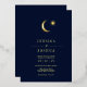 This design features elegant personalised celestial wedding invitation with classic star and moon golden symbols in navy blue night sky colour. This card is easily editable. If you need help with the customisation of this card or you need more matching products for this collection kindly message me via Zazzle.