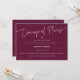 Postponing a big event like your wedding can be stressful, but you can still look stylish with this modern and minimalistic change of plans template card. It says "change of plans" in stylish script font at the top with a little heart. The background is cranberry.