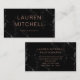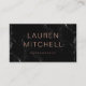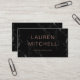 These simple and modern business cards feature elegant rose coloured text on a black marble look background.