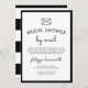 Minimalist bridal shower by mail invitation for a long-distance celebration where you will shower the bride to be by sending cards and gifts rather than celebrating in person. The chic bridal shower by mail invite feature a cute envelope with a pink heart, a modern typography design and a black border.