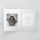 Modern minimalist and elegant design featuring four-photo template with four lines of editable text for your personal greetings on front. Inside features additional photo template, text fields and simple clean white and grey chevron pattern background.
