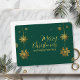 Minimalist Christmas Gold Foil Snowflakes on Green Holiday Card