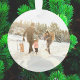 A stylish modern holiday photo ornament with a modern minimal typography quote "the most wonderful time of the year" paired with a handwritten script font for your family name in white with a bluish off black feature color in a 'scandi' scandinavian design style. The greeting, name, year and message can be easily customized for a personal touch. A trendy, minimalist and contemporary design to stand out this holiday season! The image shown is for illustration purposes only to be replaced with your own photo. The placeholder image is of a young family of four playing in the snow with a wooden sled and pine tree backdrop.