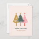 This charming Christmas Holiday Postcard features a minimalist illustration of three unique Christmas trees in shades of gold, green, and pink. With its simple yet festive design, this card is perfect for spreading holiday cheer and warm wishes for a Merry Christmas and a Happy New Year. The soft pastel background adds a modern and elegant touch, making it a delightful choice for any holiday celebration.