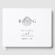 A minimalist tropical clam monogram wedding design. A simple design that uses a sketch of a clam seashell to create an elegant classic monogram. A charming black and white tropical beach design with rustic strokes and classy script typography. An elegant coastal beach themed wedding guets book design with modern elements. Matching wedding stationery items and other wedding invite formats are also available.