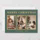 Minimalist Classic Christmas Green Three Photo Holiday Card