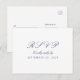 Customise this elegant minimalist clean white Response RSVP Postcard, designed with navy blue text. Modern crisp design on a white background. Matching products can be found in a collection Chic Monogram Navy Blue White Wedding.